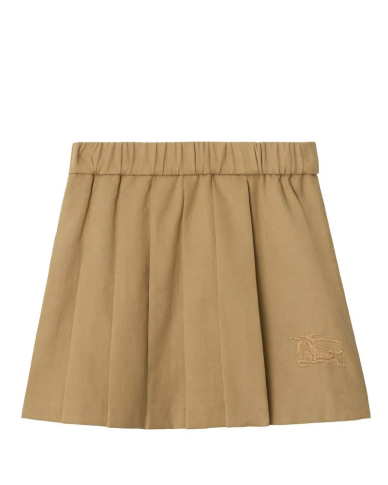 Gonna a pieghe in twill di misto cotone con Equestrian Knight Design ricamato, vita elasticizzata.