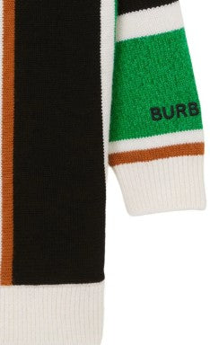 Strickjacke aus Wolle mit V-Ausschnitt, Streifenmuster, Knopfverschluss vorne und gerippten Abschlüssen.