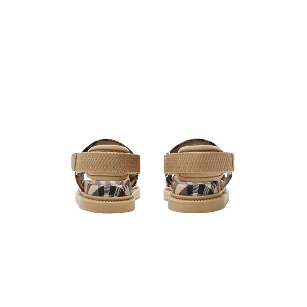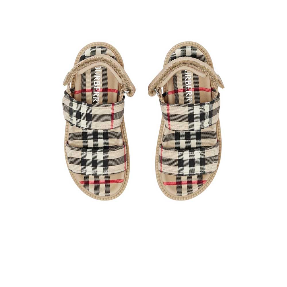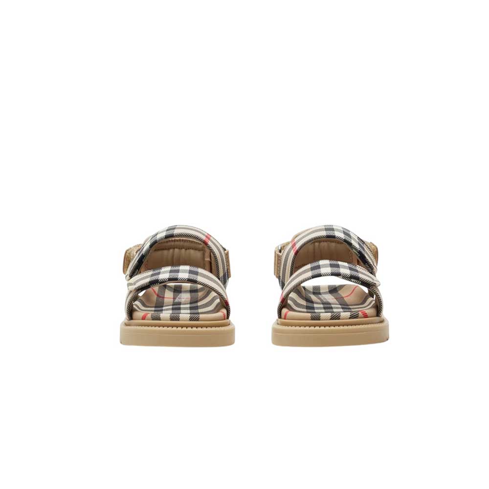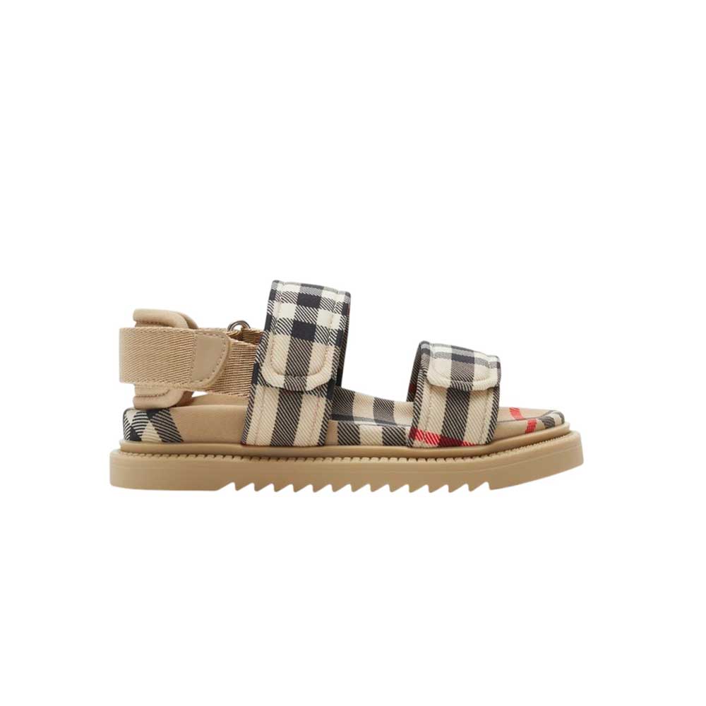 Risalta il tuo coraggio con i sandali Burberry Check, la cui chiusura a strappo ti spinge a sfidare i tuoi limiti. Il motivo Burberry Check aggiunge un tocco di stile unico, mentre la punta tonda e la soletta sagomata assicurano il massimo comfort. Con la scritta Burberry sulla suola, sei pronto per ogni avventura!