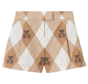 Shorts aus Baumwolle mit elastischem Bund und einem Rautenmuster, das über dem Thomasbär-Motiv der Marke liegt.