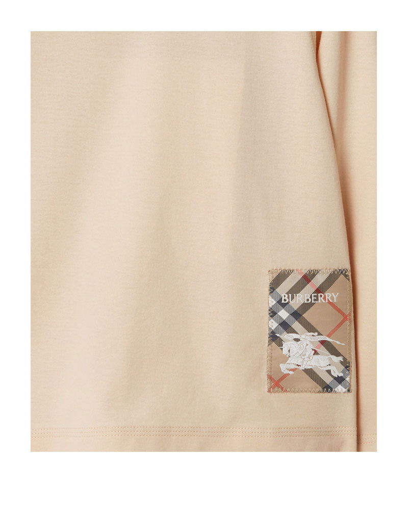 T-shirt girocollo a maniche lunghe in jersey di cotone con un'applicazione intessuta Burberry Check sul petto.