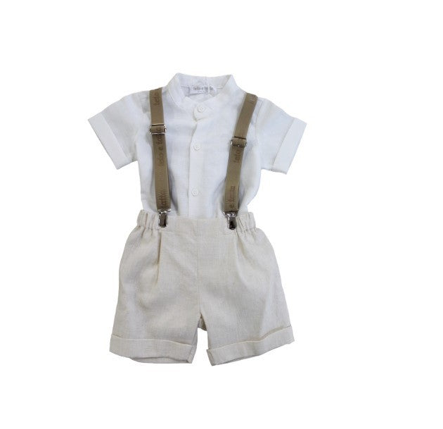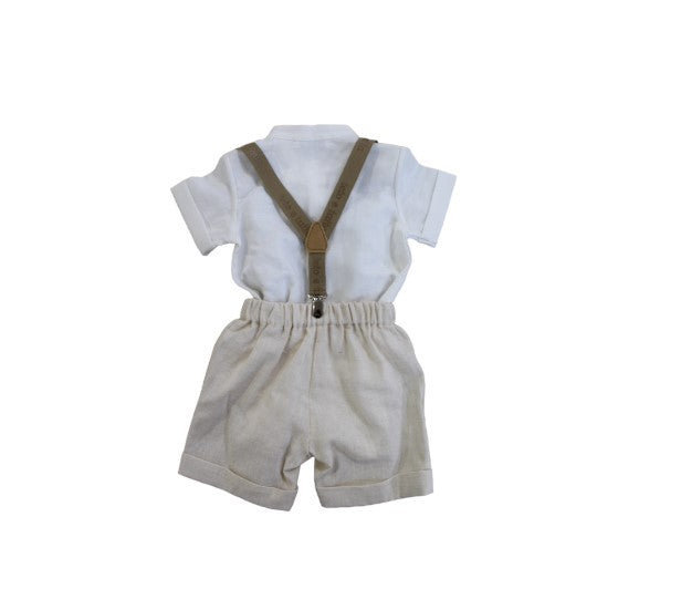 Set aus Body, Hemd und Hose mit Stehkragen, elastischen Trägern und eingraviertem Logo