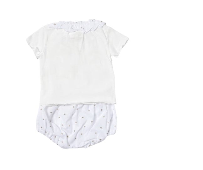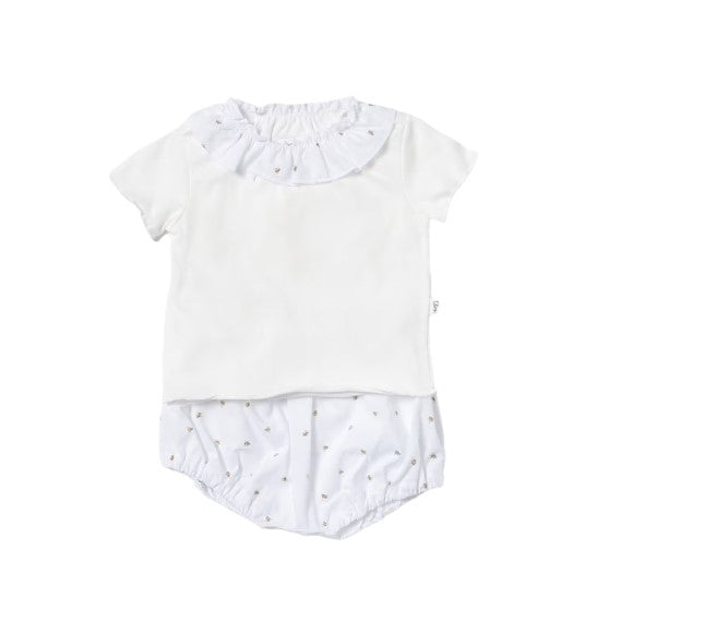 Komplettes T-Shirt mit Rüschenkragen und Culotte