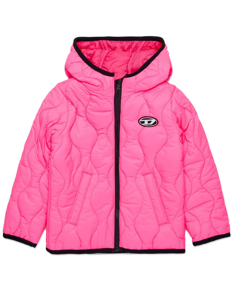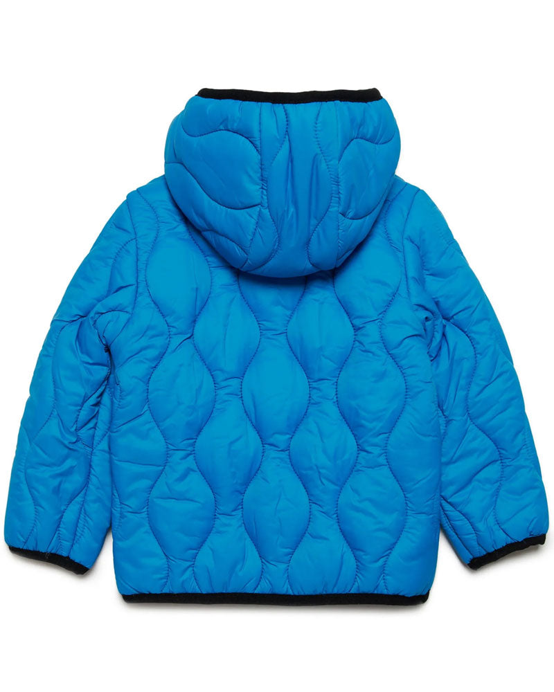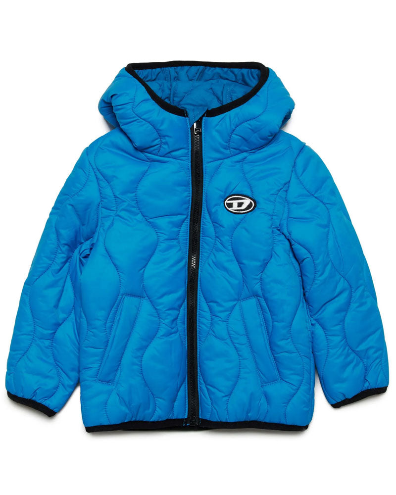 Giubbino con cappuccio 100 grammi in nylon, chiusura frontale zon zip, tasche laterali, patch logo applicato.