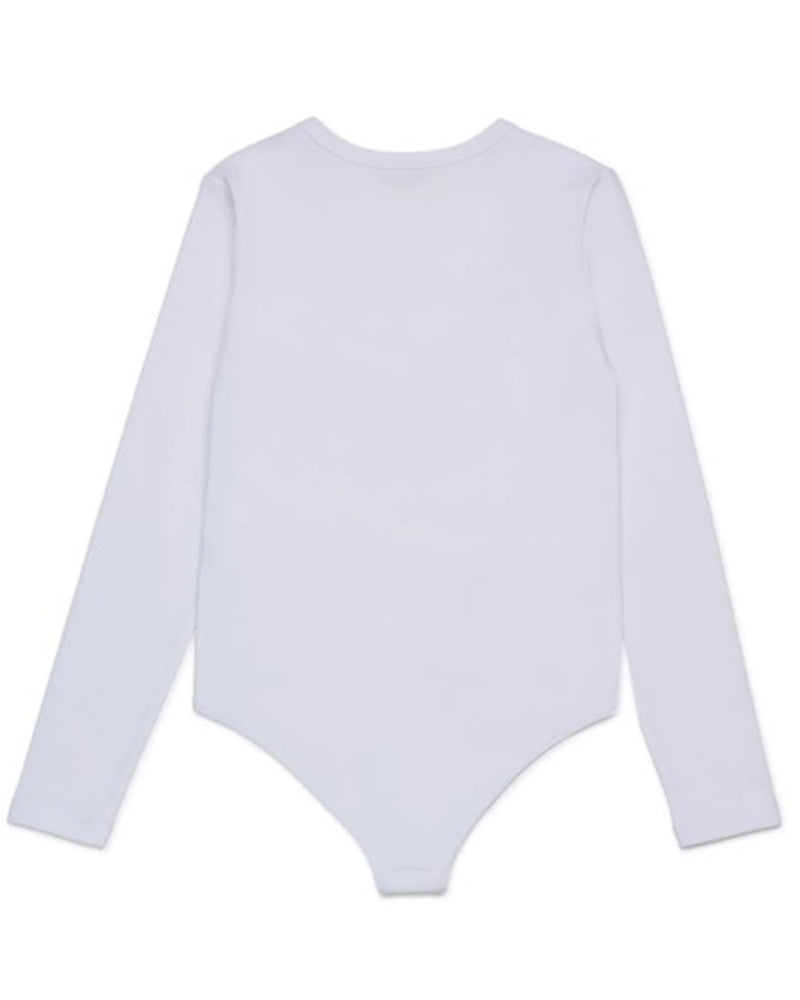 Body da ragazza realizzato in jersey di cotone elasticizzato, caratterizzato da collo tondo, maniche lunghe e chiusura con bottoncini a pressione sul cavallo. È decorato con Logo Oval D outline ricamato a contrasto sulla parte anteriore.