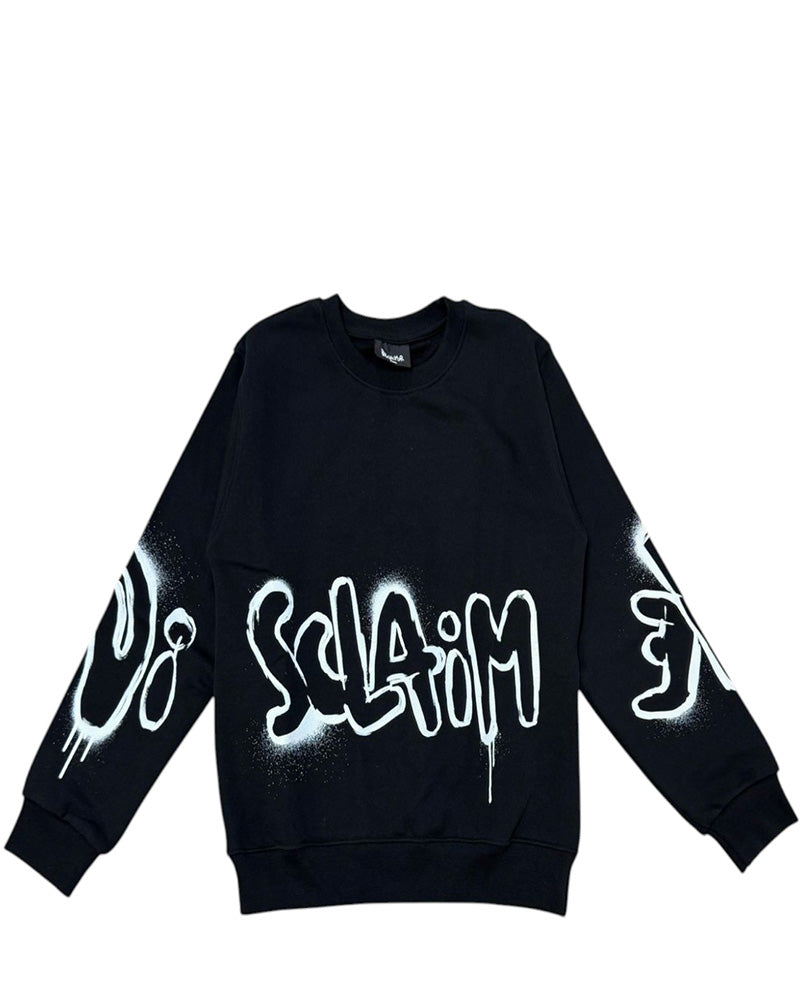 Felpa realizzata in cotone girocollo, maniche lunghe, collo polsi e orlo in costa, stampa in contrasto sul davanti.