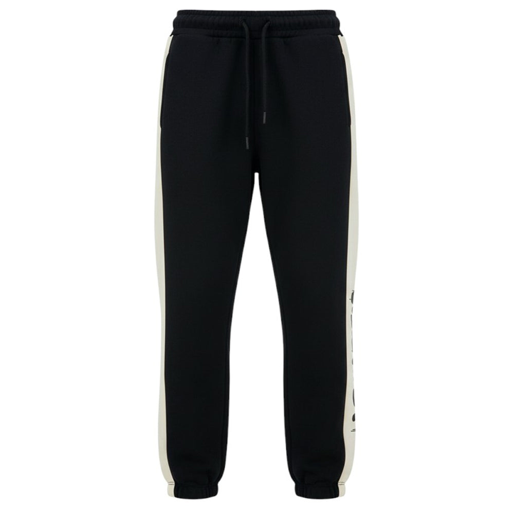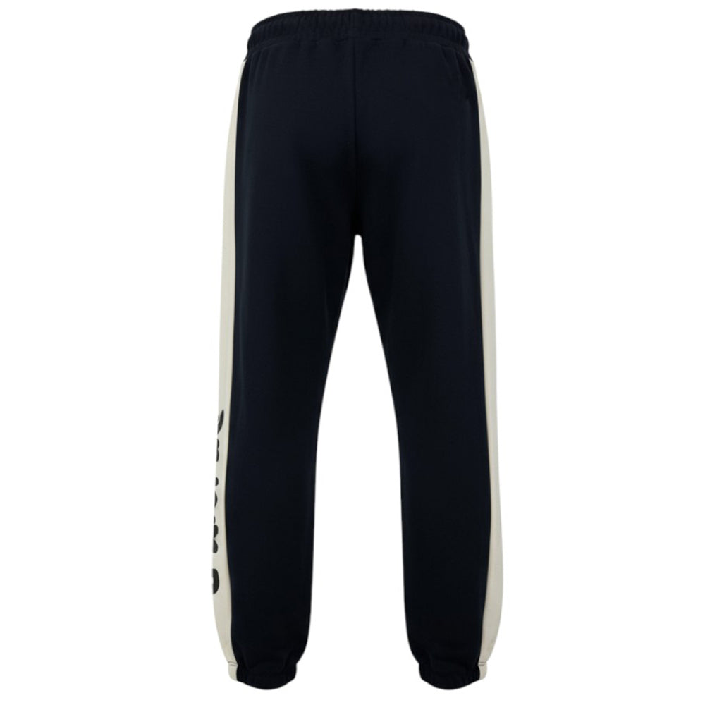 Pantaloni jogger realizzati in cotone garzato. Presentano vita elasticizzata con coulisse, due tasche laterali a filetto, fodera in pile e fondo con elastico alla caviglia. Sono decorati con bande laterali a contrasto colore e logo stampato.