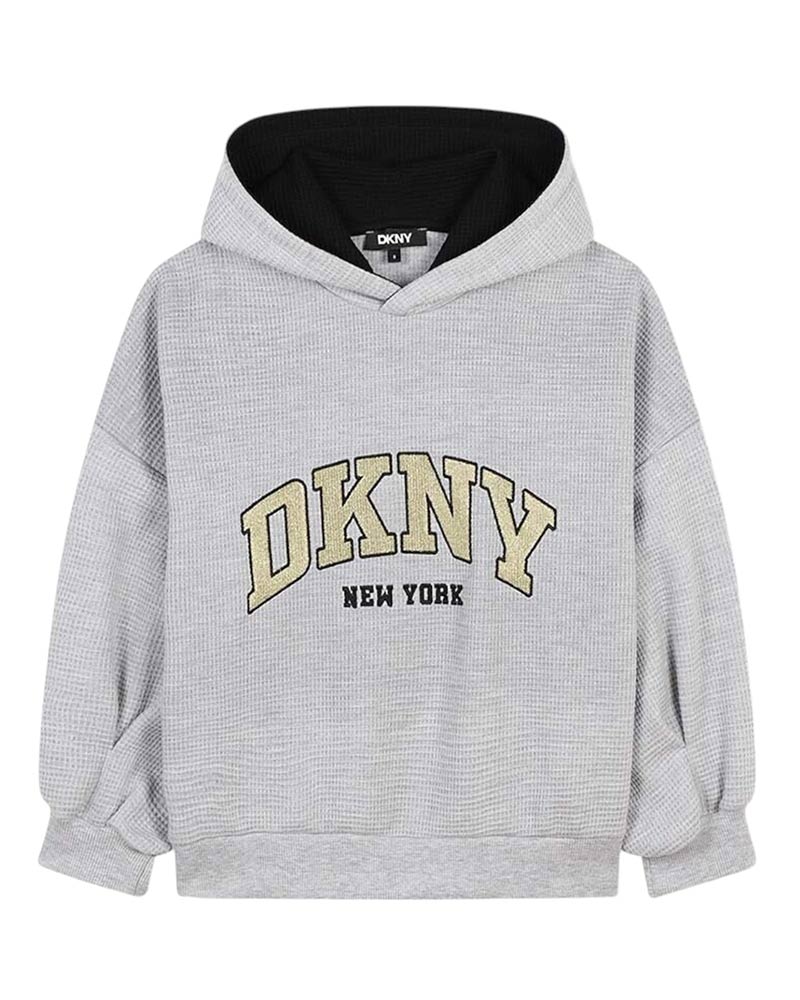 Felpa da bambina realizzata in cotone a nido d'ape. Presenta cappuccio, maniche lunghe, polsi e orlo a coste. È decorata con logo ricamato sul davanti.