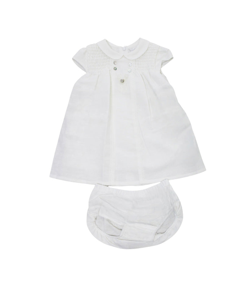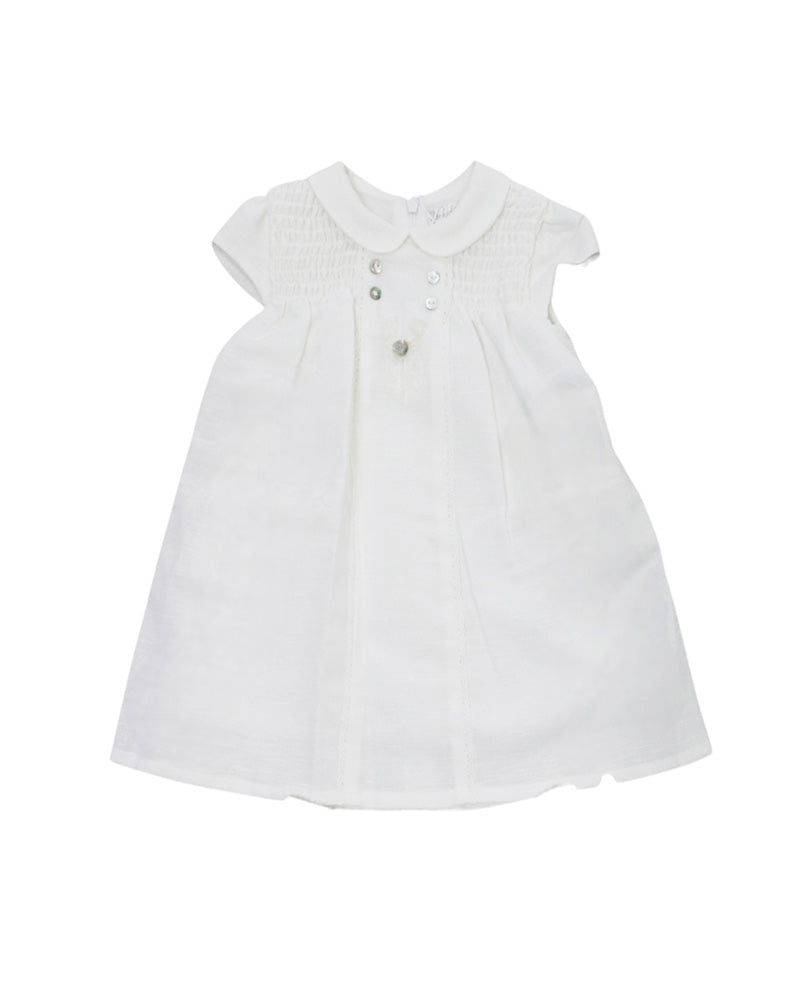 Risalta la grinta dei tuoi bambini con la Dottor Kids Vestina Con Punto Smock! La vestina a mezza manica, con collo tondo, dona un look unico, mentre il motivo punto smock e i bottoncini in madreperla sul davanti aggiungono dettagli eleganti. Completa di culotte, sarà perfetta per viaggi verso nuove avventure!
