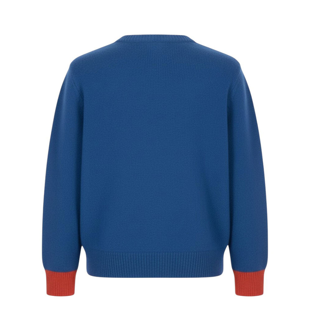 Wollpullover mit Rundhalsausschnitt und Muster auf der Vorderseite.