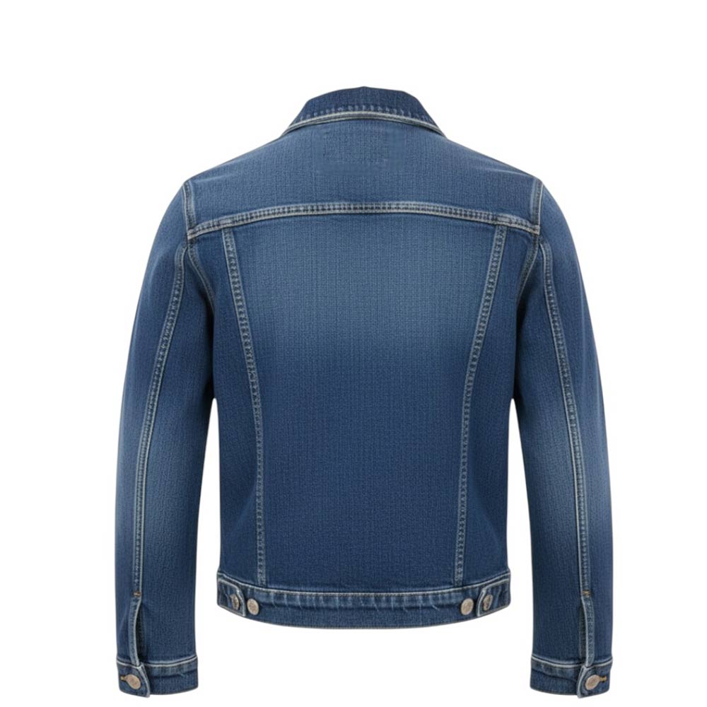 Jeansjacke, Knopfverschluss vorne, aufgesetzte Taschen auf der Brust.