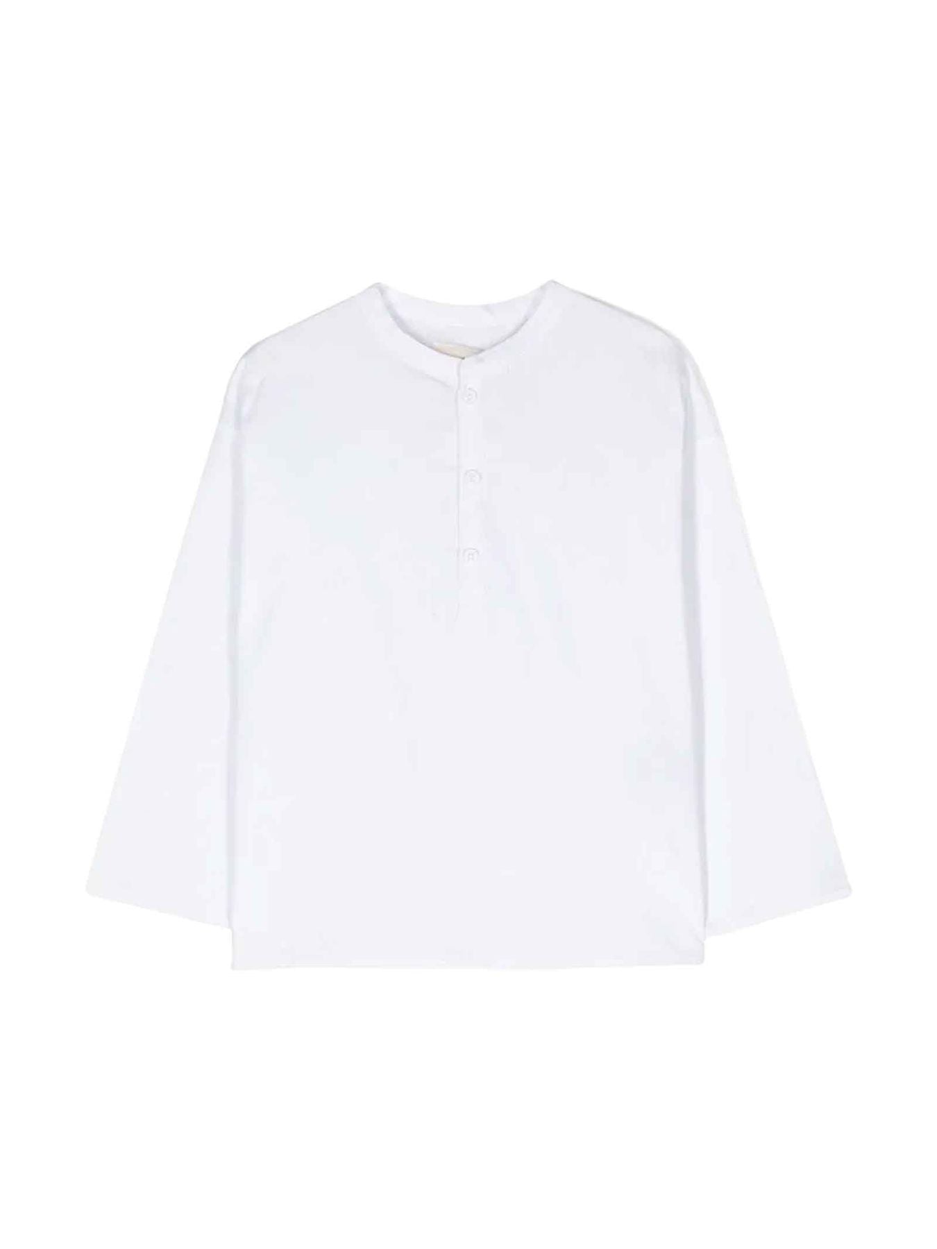 Hemd mit Stehkragen und Knopfverschluss vorne.