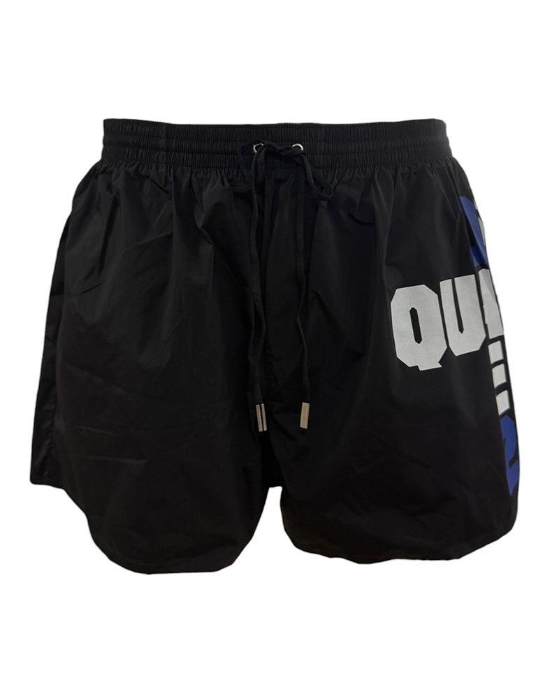 Boxer mare nero da uomo, realizzato in nylon. Presenta vita elasticizzata con coulisse, tasche laterali a filo, fodera interna. È decorato con stampa logo sul davanti.