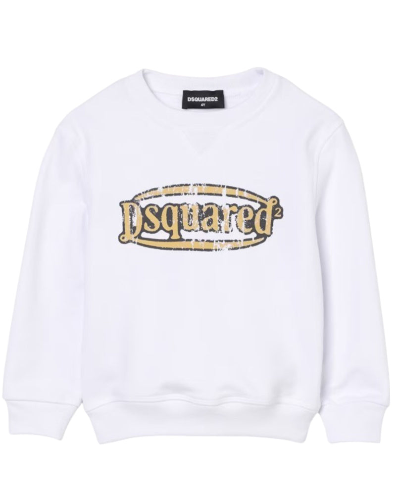 Felpa girocollo a maniche lunghe. Vestibilità relax, regolare. Logo Dsquared2 effetto vintage a contrasto colore sul davanti. Lavorazione a costine su girocollo, polsini e fondo.