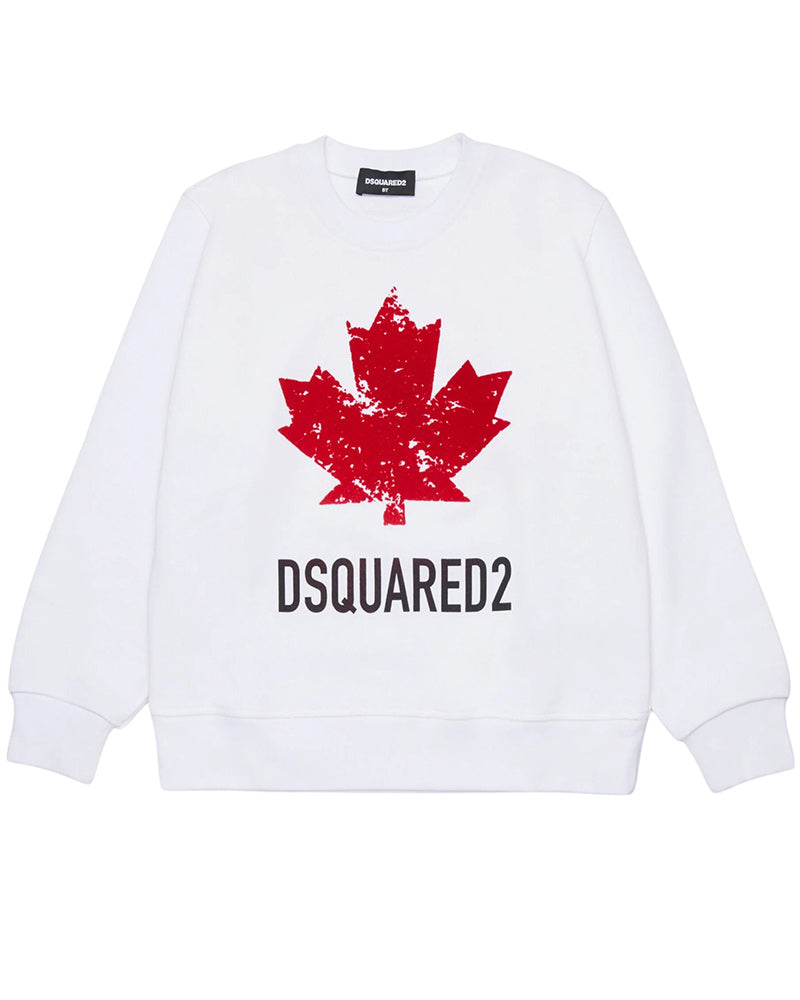 Dsquared2 Felpa in cotone bianca con stampa DQ3005 D00ZF