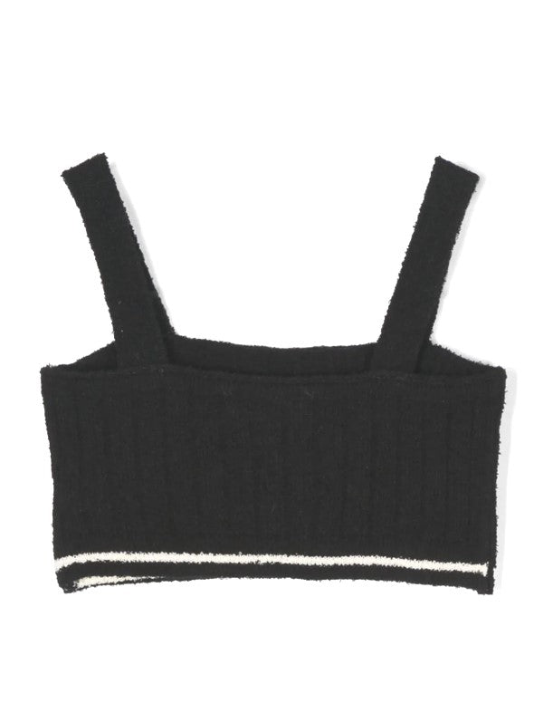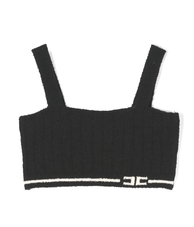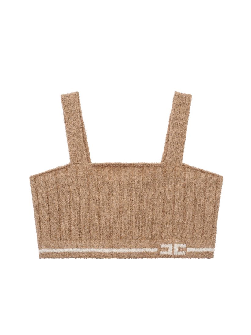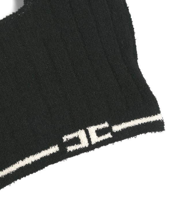 Gestricktes Oberteil, quadratischer Ausschnitt, kontrastierendes Logo auf der Vorderseite.