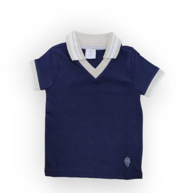 Polo-T-Shirt mit kontrastierendem Rippkragen, kurzen Ärmeln und gesticktem Logo auf der Vorderseite.