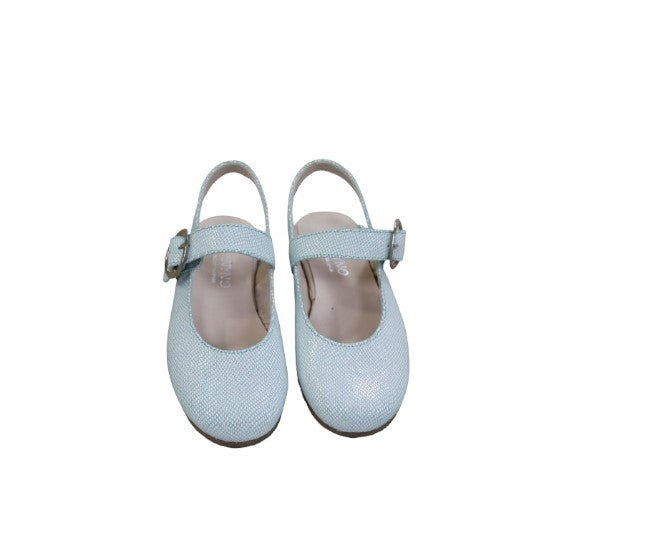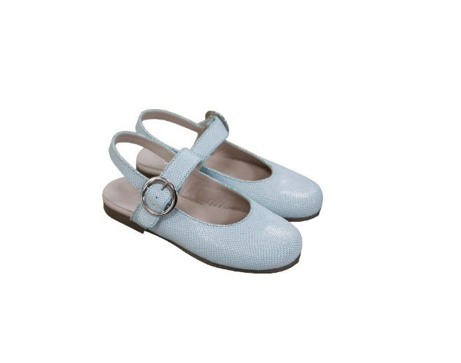 Hinter der Ferse offene Ballerinas mit seitlicher Schnalle aus Lurex-Leder