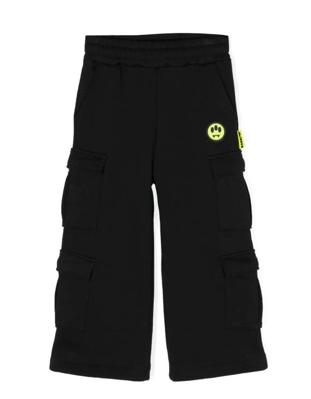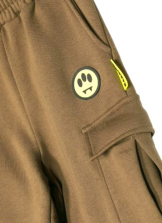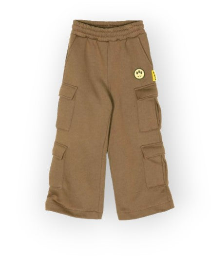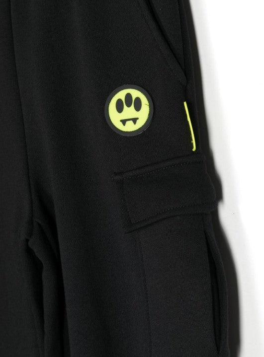 Cargohose aus Baumwollfleece, elastischer Bund mit Kordelzug, große Taschen mit Patte an den Seiten, gummiertes Smile-Detail am Bein und seitliches Logo.