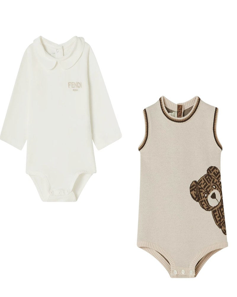 Questo completo da due pezzi Fendi Kids assicura il comfort del tuo neonato, aggiungendo al contempo un tocco di stile iconico.