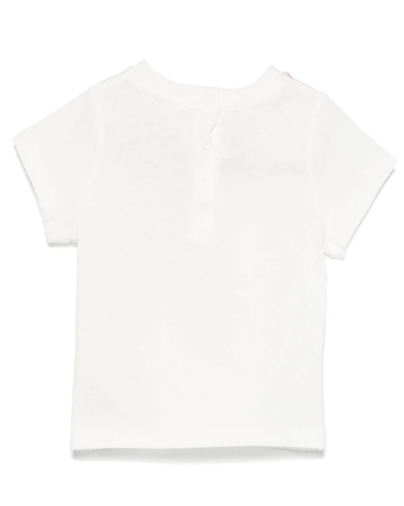 Entdecken Sie das kurzärmelige Rundhals-T-Shirt aus Baumwolljersey , ein unverzichtbares Kleidungsstück für Ihre Garderobe. Der Trompe-l'oeil-Druck mit der Ton-in-Ton-Rosaschleife und dem Allover-Logo verleiht Ihrem Look einen Hauch von Eleganz und Originalität. Sein modernes und raffiniertes Design ermöglicht es Ihnen, es zu jedem Anlass stilvoll zu tragen. Lassen Sie sich dieses einzigartige T-Shirt nicht entgehen, perfekt für alle, die Komfort und Eleganz in einem einzigen Kleidungsstück suchen!