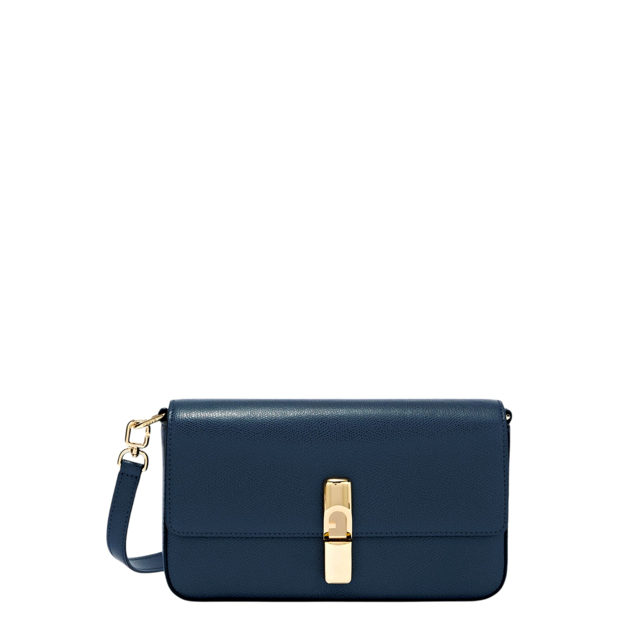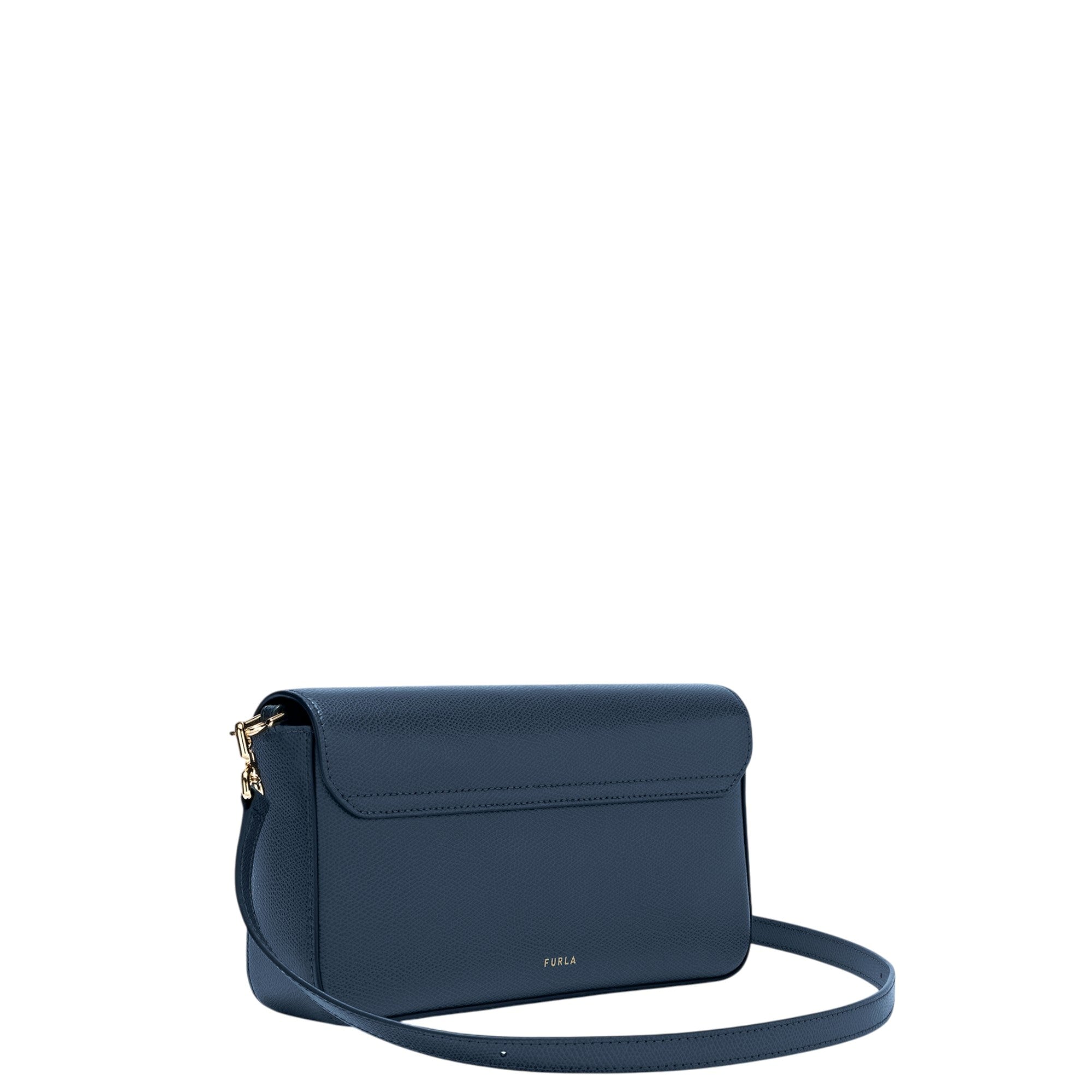 l corpo della borsa di dimensioni compatte è realizzato in pregiata pelle martellata, abbinato alla tracolla regolabile e rimovibile che ne consente molteplici opzioni d'indosso. La chiusura magnetica è impreziosita dall'hardware cilindrico in metallo firmato con l'iconico logo Arco Furla.