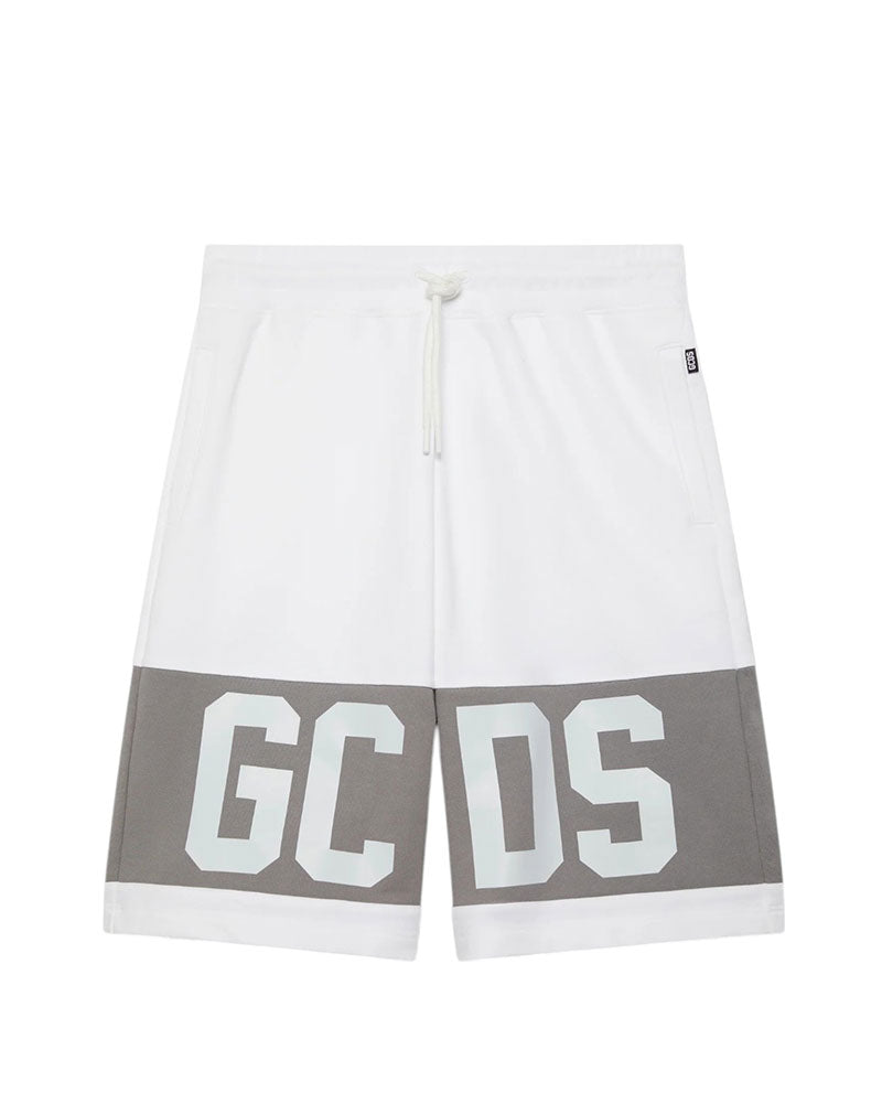 Bermuda sportivi in felpa di jersey di cotone pettinato, vita media elasticizzata con coulisse regolabili, due tasche laterali e una posteriore a filetto, stampa con banda anteriore e logo lettering a contrasto grigio all-around, etichetta logo lettering a bandierina laterale, orlo dritto. Vestibilità regolare.