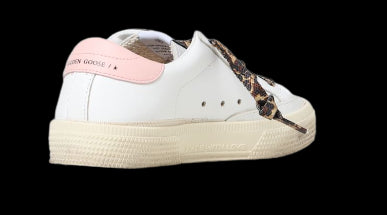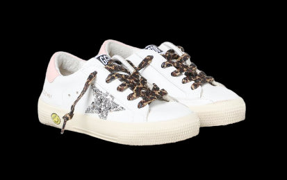 May-School-Sneaker mit gepunkteten Schnürsenkeln und glitzerndem Stern.