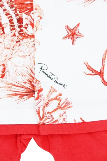 Zweiteiliger Playsuit von Roberto Cavalli mit Korallenmuster.