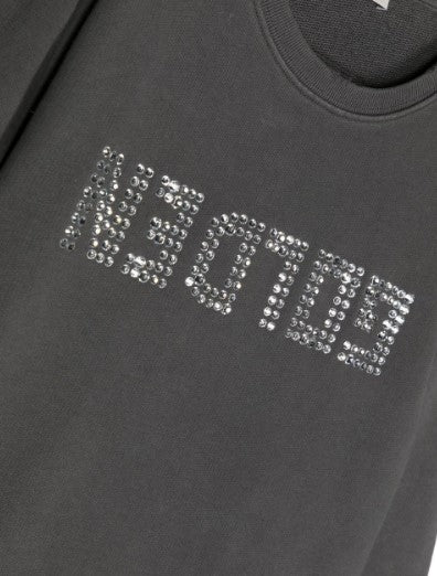 Langärmeliges Rundhals-Sweatshirt für Mädchen aus Stoff mit Vintage-Effekt, Strass-Logo-Applikation auf der Vorderseite, gerippte Abschlüsse.
