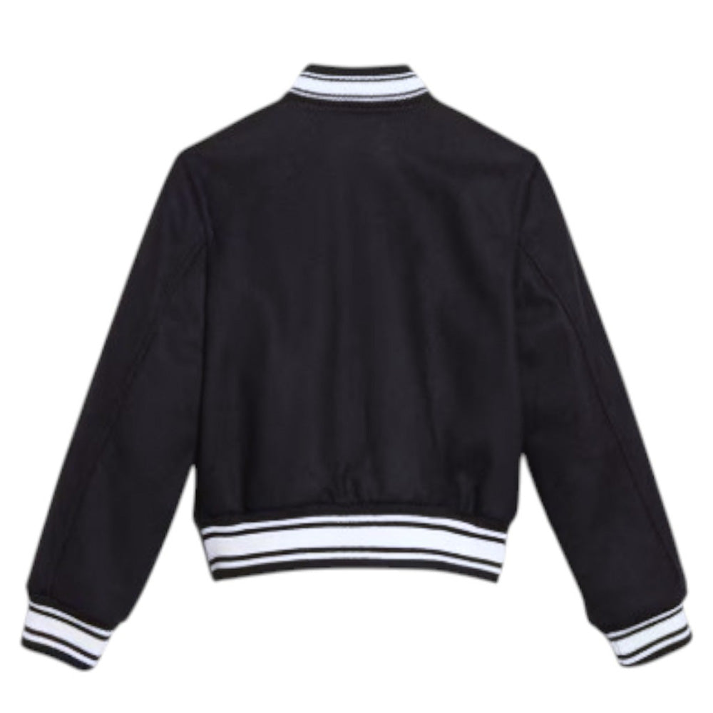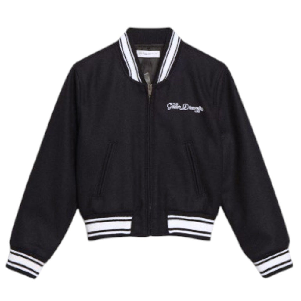 Bomberjacke aus Wollmischung, Reißverschluss vorne, Logo-Stickerei auf der Brust, kontrastierende Rippenbündchen.