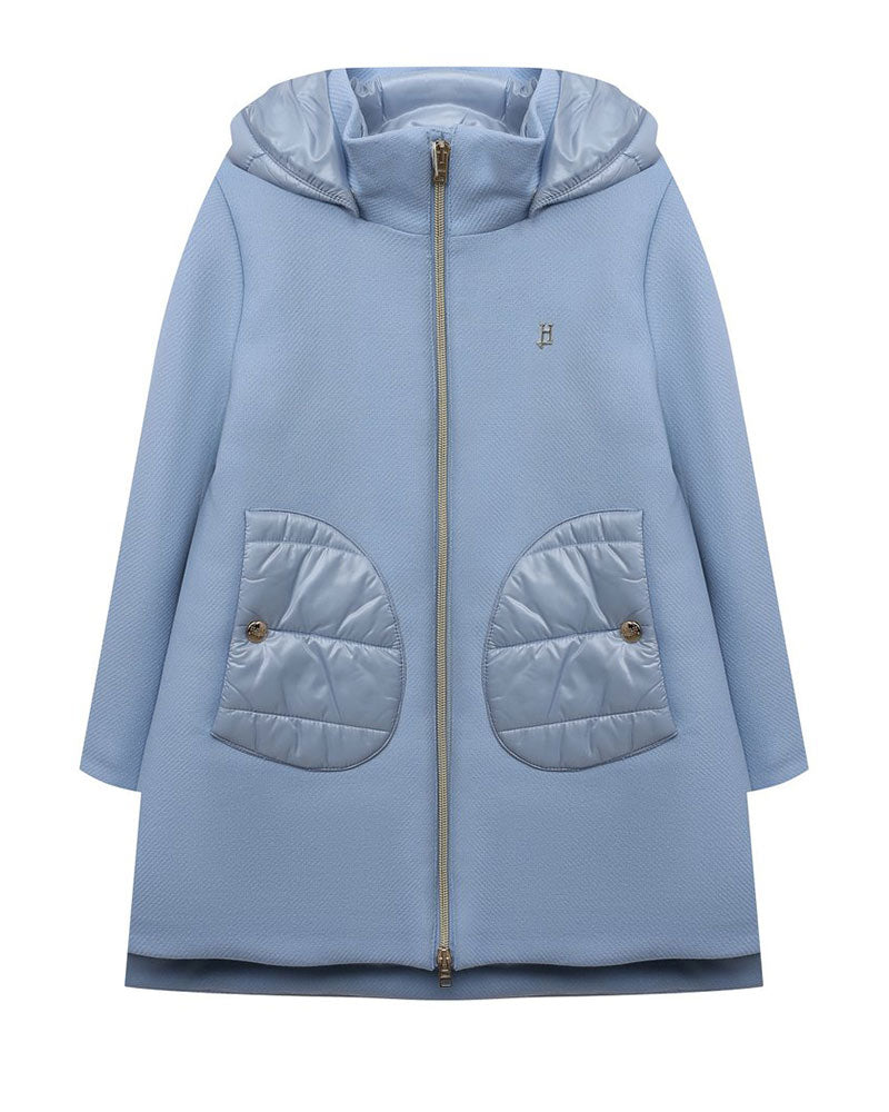 Herno Cappotto azzurro in twill di lana vergine con cappuccio GC000049G