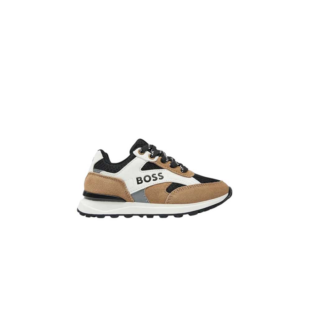 Affronta il tuo prossimo obiettivo con le sneakers Hugo Boss con logo j51322 per bambini. Dettagli tessuto e pelle di vitello, logo stampato e chiusura a laccio bicolore. Fodera e soletta interne traspiranti e antibatteriche per una maggiore comodità. Suola in TPR per affrontare ogni sfida con sicurezza.