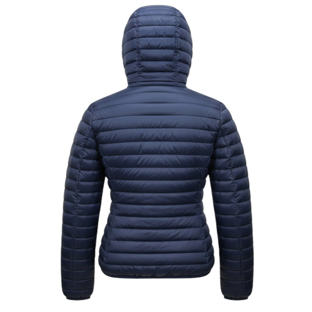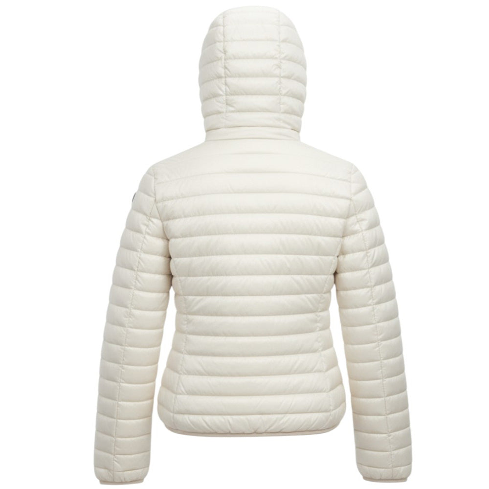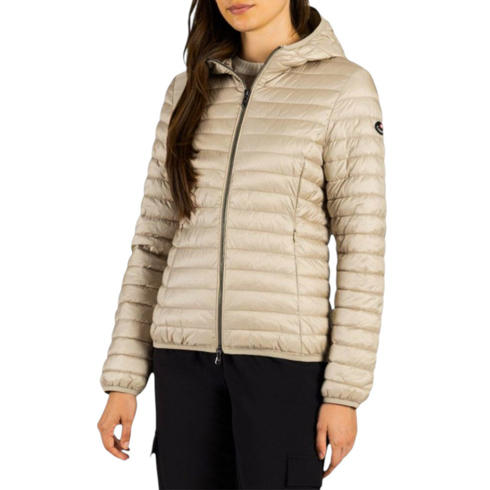 Daunenjacke aus Mikrofaser, angereichert mit einer Anti-Drop-Behandlung, innen gepolstert mit Plume no Plume® (ökologische Synthetikwatte in losen Flocken wie echte Daunen), zentrale Öffnung mit Doppelschieber-Reißverschluss, Kapuze und praktische Seitentaschen mit unsichtbarem Reißverschluss.