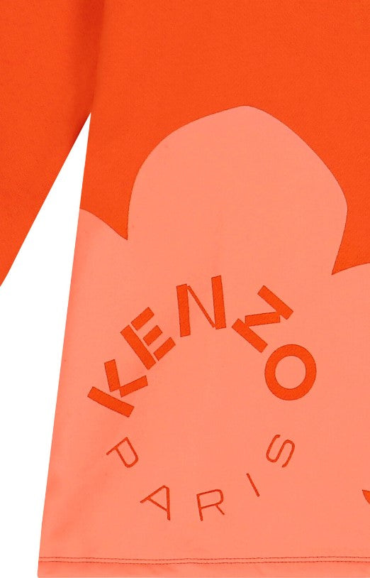 Langärmliges Kapuzenkleid aus Baumwollfleece, mit aufgedrucktem Logo auf der Vorderseite und elastischen Bündchen.