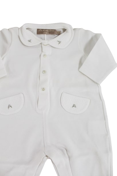 La Stupenderia-Playsuit mit Handstickerei am Kragen und an den Taschen.