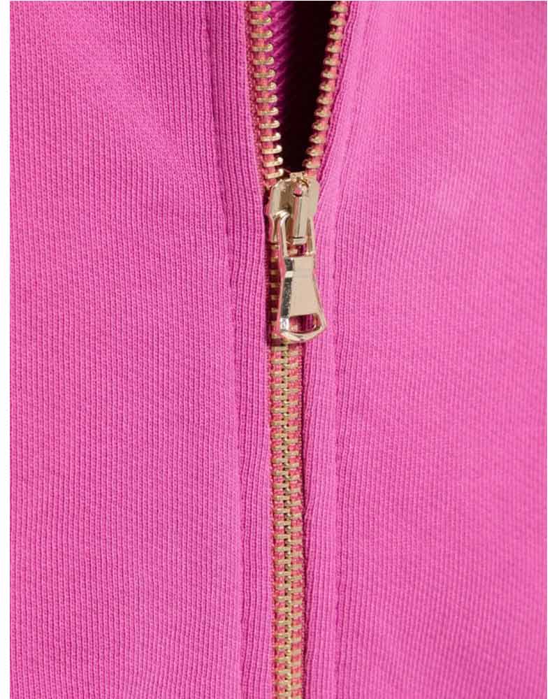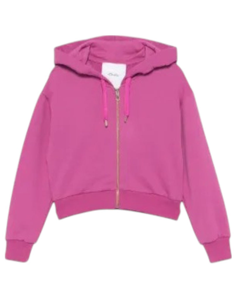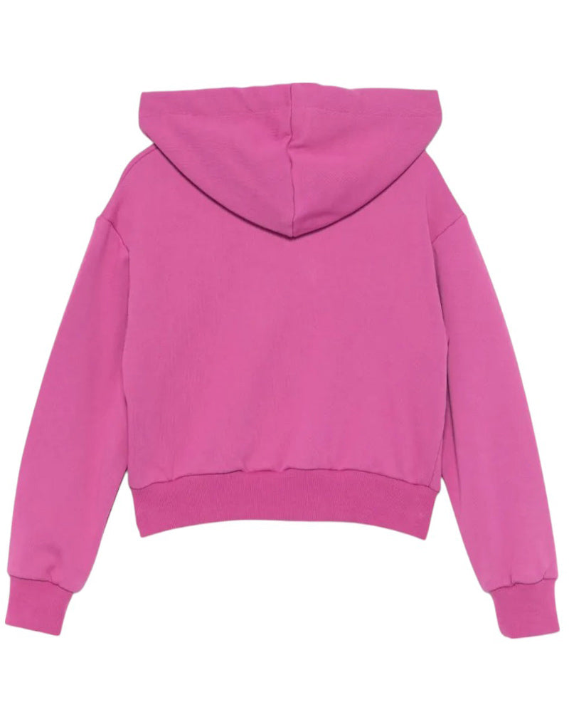 Felpa cropped da bambina realizzata in cotone sgarzato. Presenta cappuccio con coulisse, chiusura frontale con zip, maniche lunghe, polsi e orlo a coste.