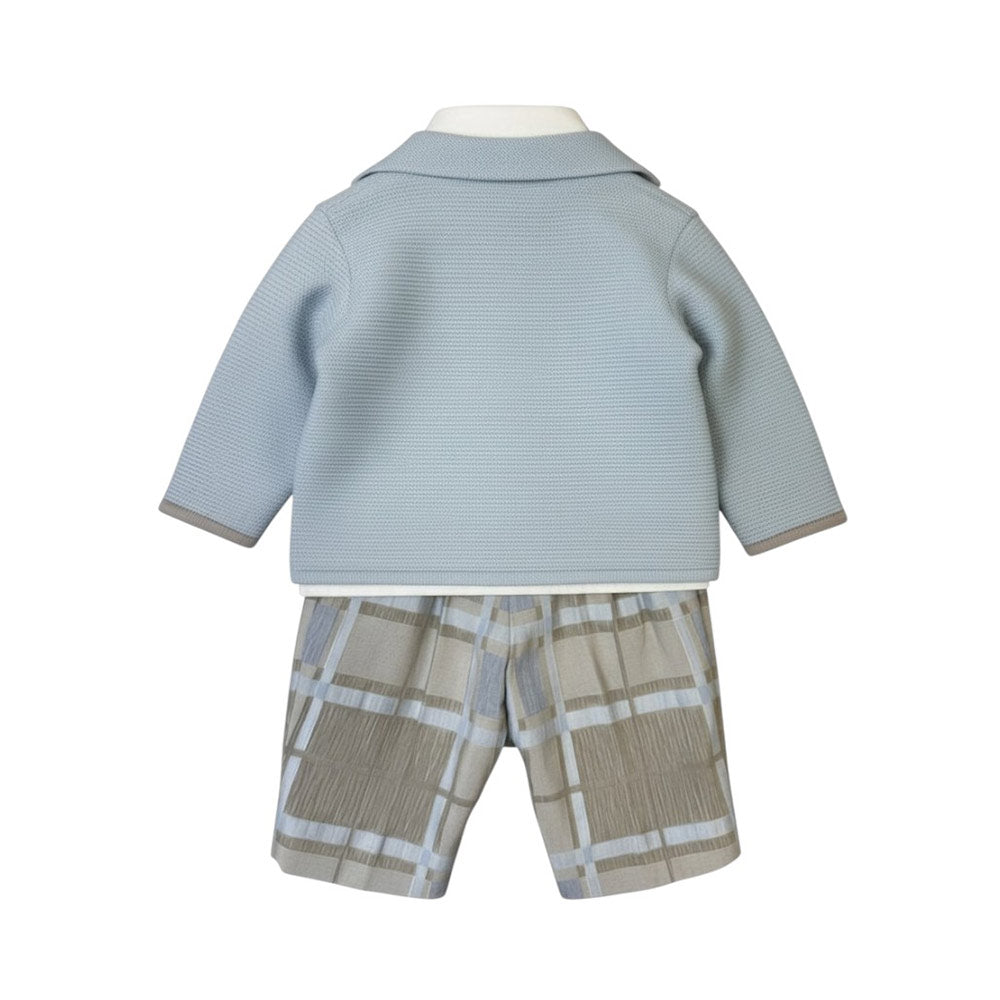 Completo 4 pezzi camicia e papillon removibile cardigan con 4 bottoncini sul davanti pantaloncino lungo a quadri