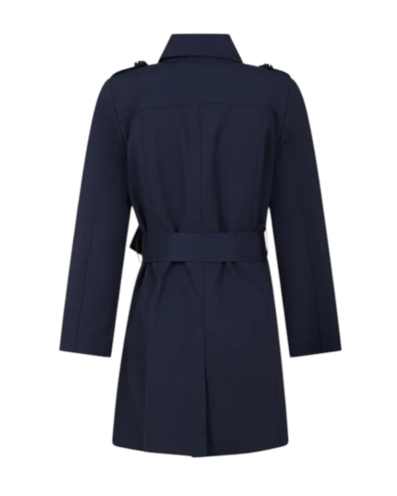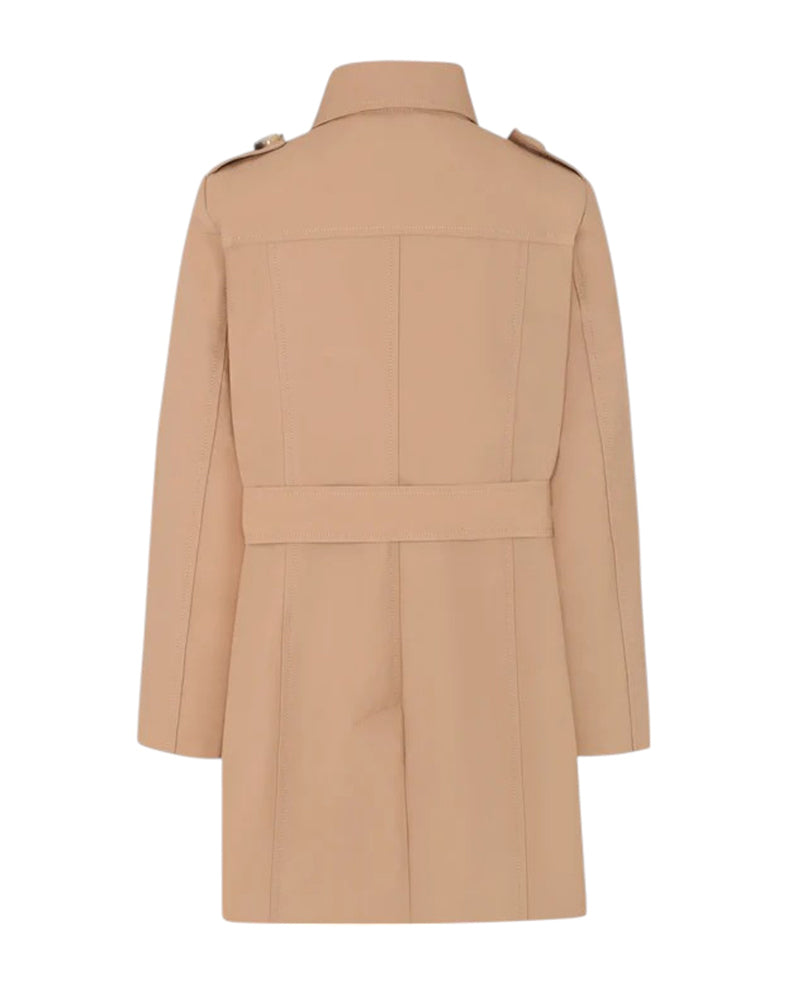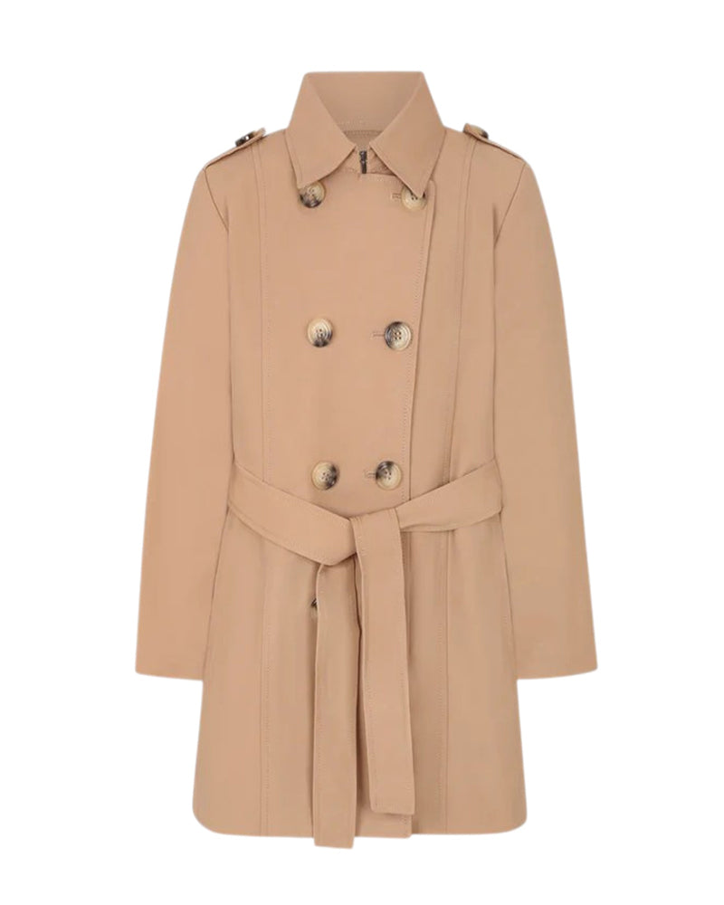 Trench in cotone, con maniche lunghe, colletto classico, chiusura con bottoni e tasche laterali. È decorato da chiusura con cintura.