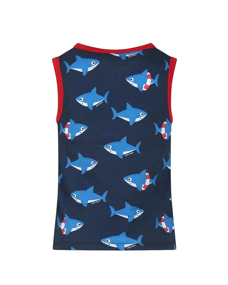 Canotta in jersey di cotone girocollo, giromanica, fantasia in contrasto all over.
