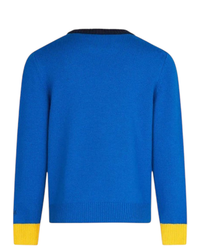 Maglia da bambino Douglas realizzata in misto lana e cashmere. Presenta collo tondo, maniche lunghe e finiture a coste. È decorata con ricamo Combina guai! sul petto.