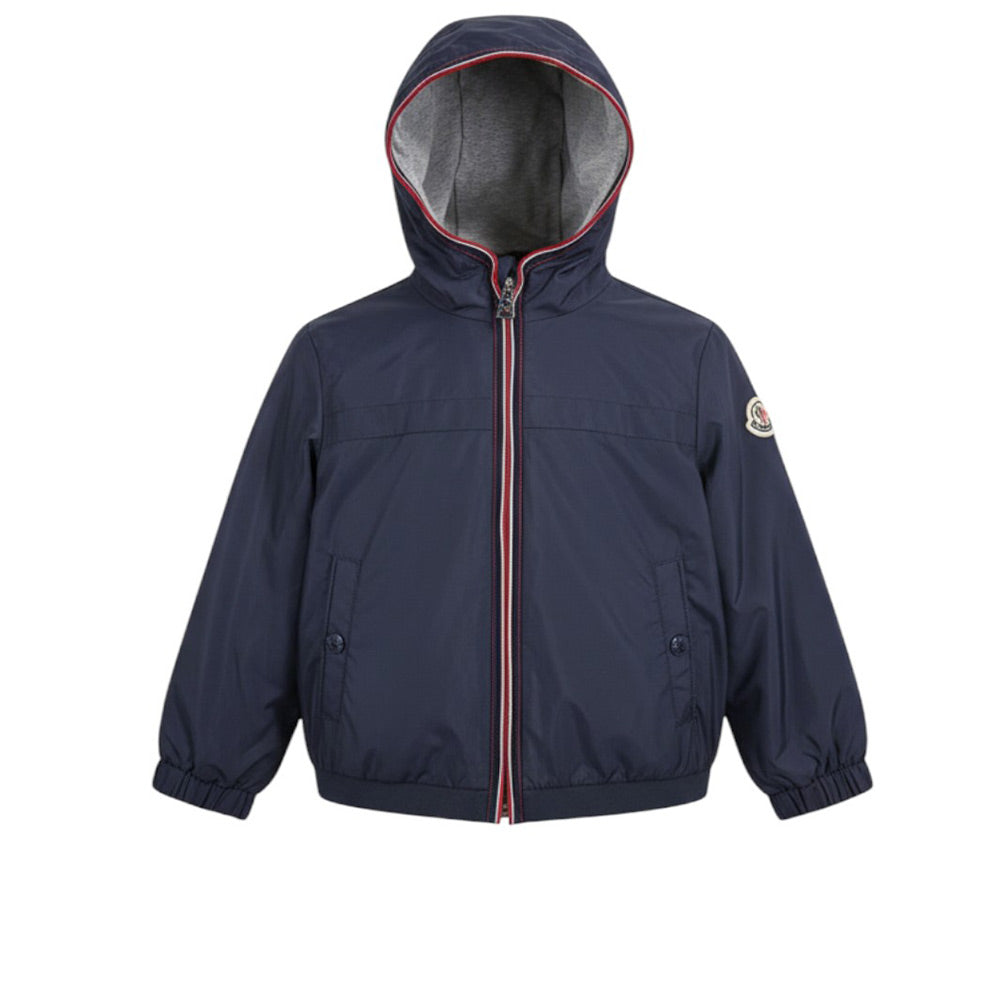 Giubbino antivento Anton da neonato, realizzato in nylon. Presenta cappuccio fisso, fodera in jersey di cotone, chiusura frontale con zip, maniche lunghe, polsi elasticizzati, due tasche laterali a filetto con clips e orlo in fettuccia elasticizzata. È decorato con patch logo applicata sulla manica.