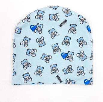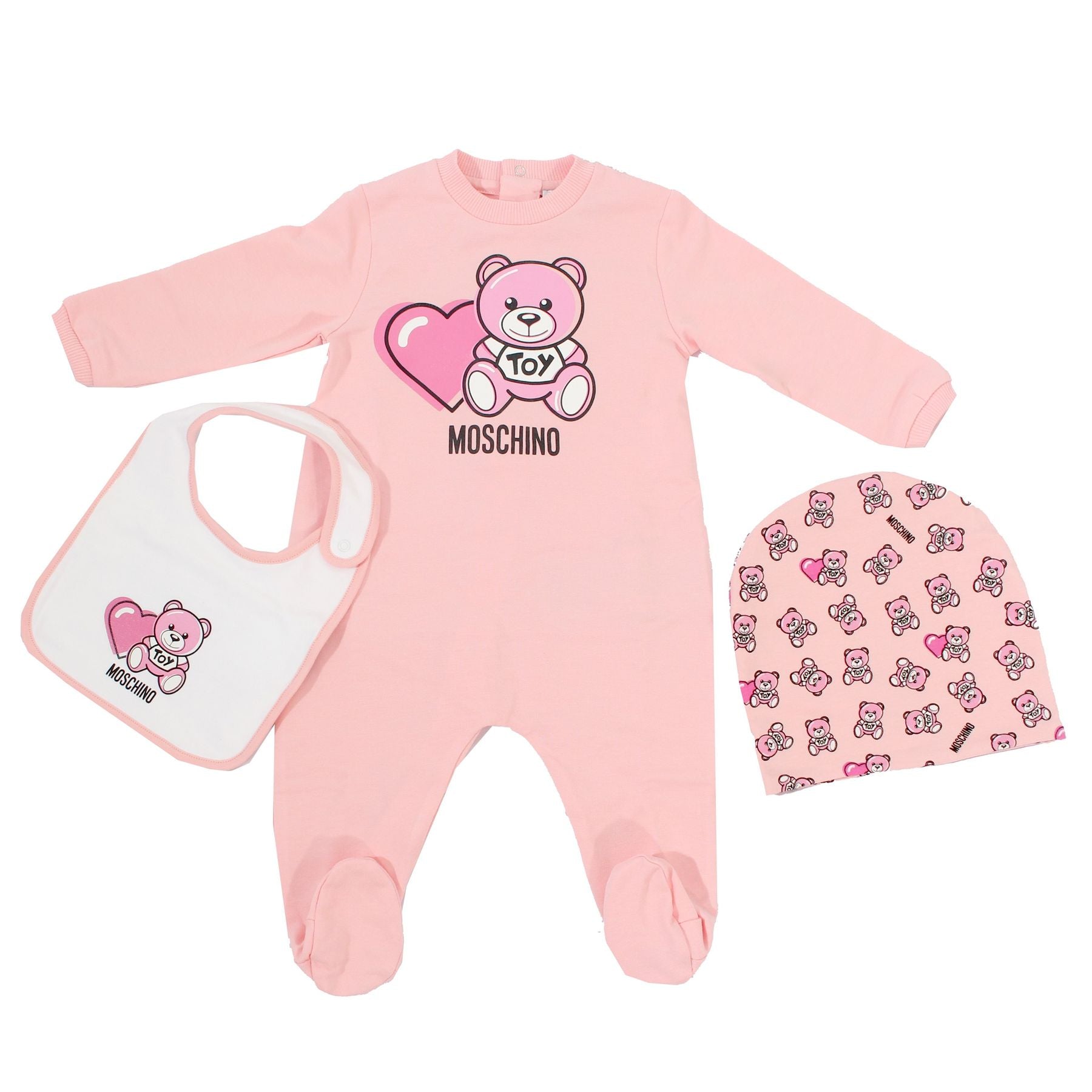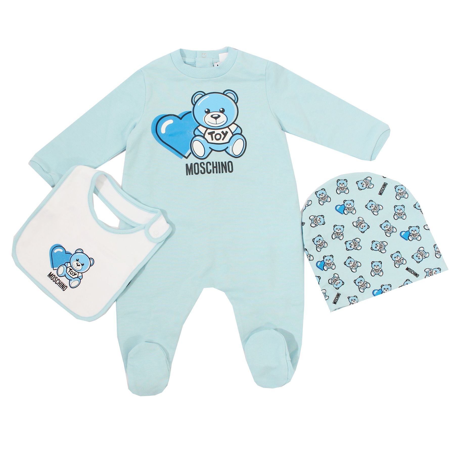 Set aus Strampler, Mütze und Lätzchen von Moschino