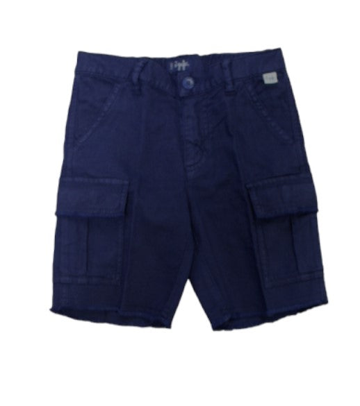 Cargo-Bermudashorts, schräge Tasche, Knopf- und Reißverschluss vorne, kleine Tasche hinten.
