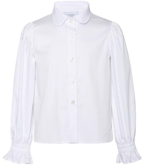 Baumwollhemd mit Bubikragen, langen Ärmeln mit Raffung und Knopfleiste vorne.