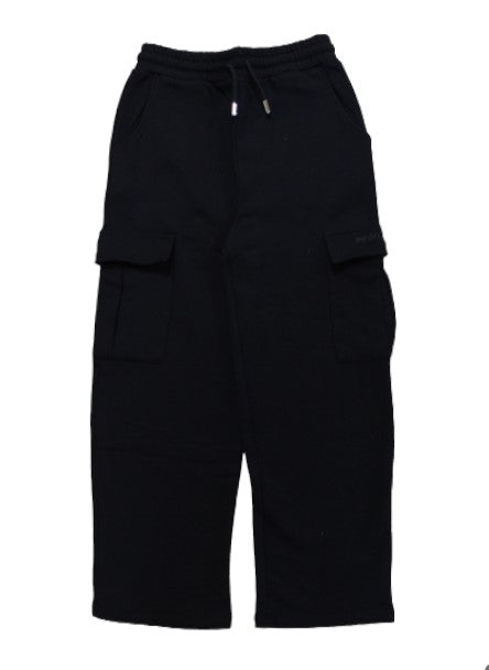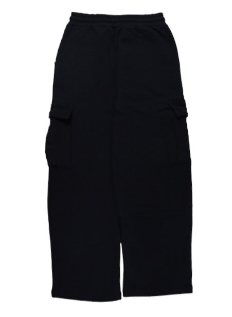 Joggerhose aus Palazzo-Baumwollfleece, elastischem Bund mit Kordelzug, runden Seitentaschen und großen Cargotaschen an den Beinen.