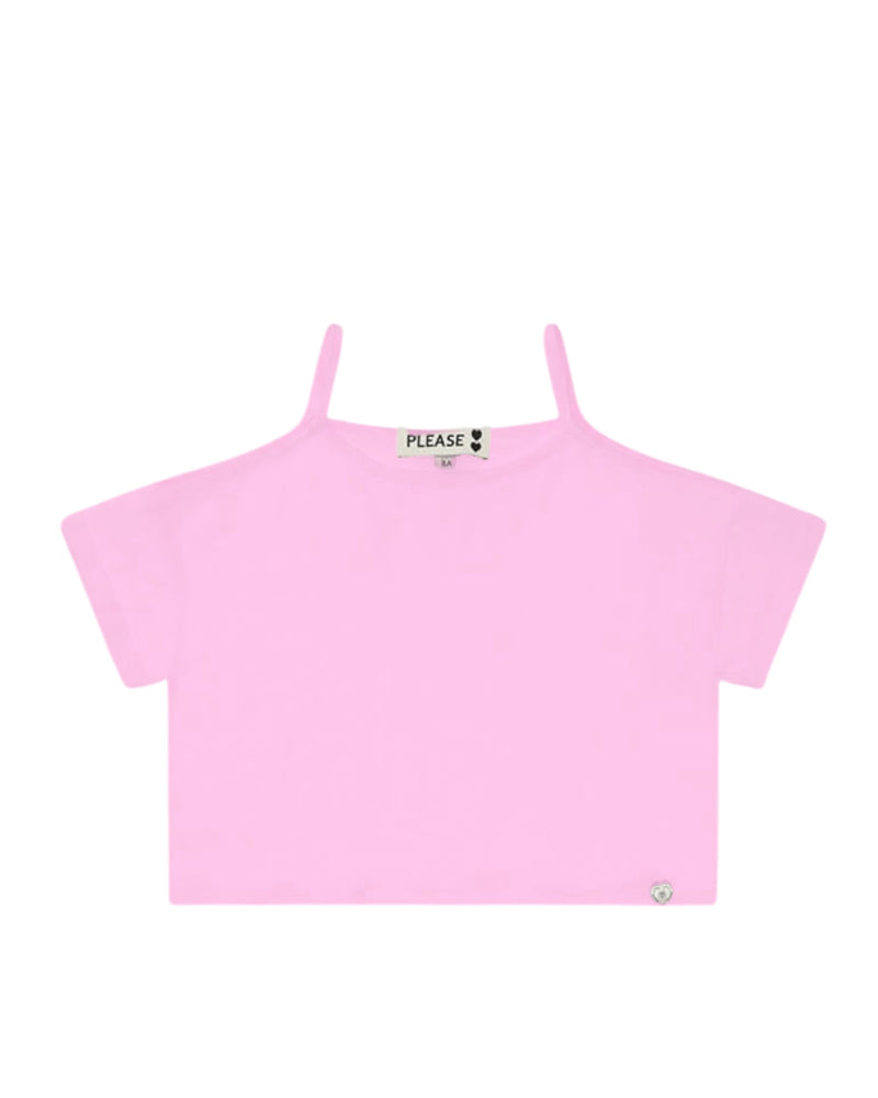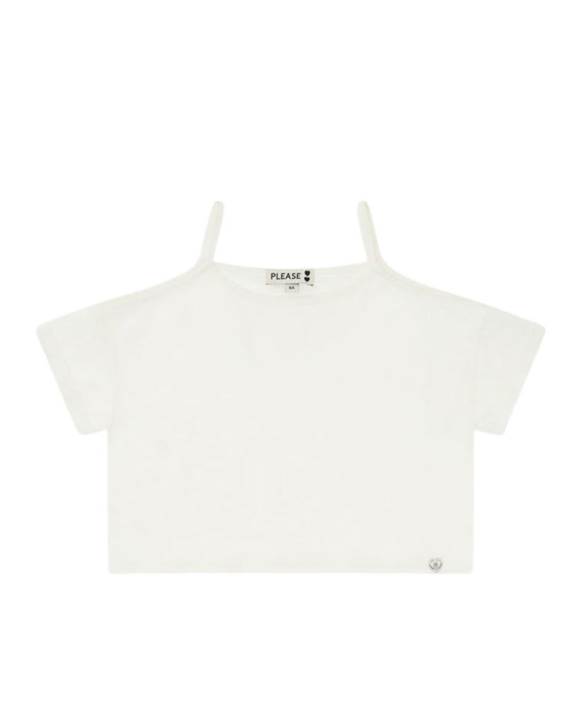 T-shirt cropped realizzata in cotone, sottili spalline, mini patch logo applicato.