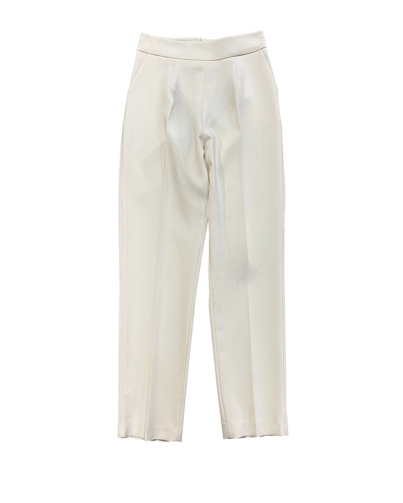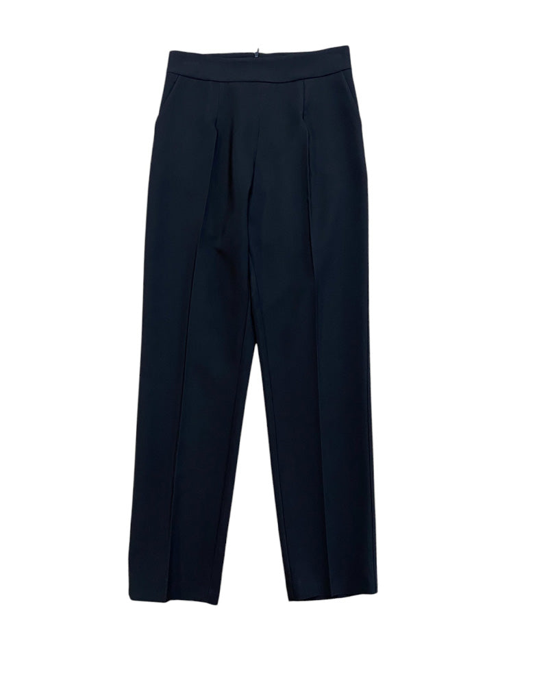 Hose mit hoher Taille, unsichtbarem Reißverschluss auf der Rückseite, Amerika-Tasche, geradem Bein.