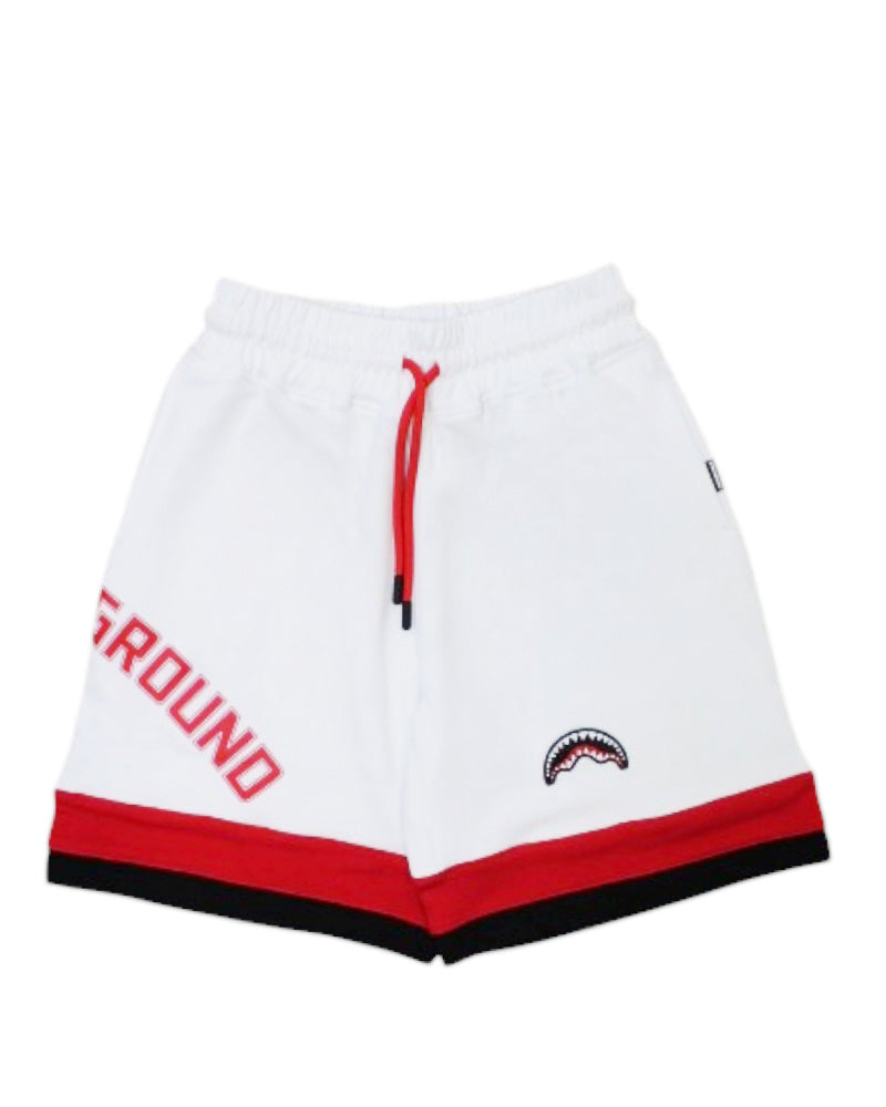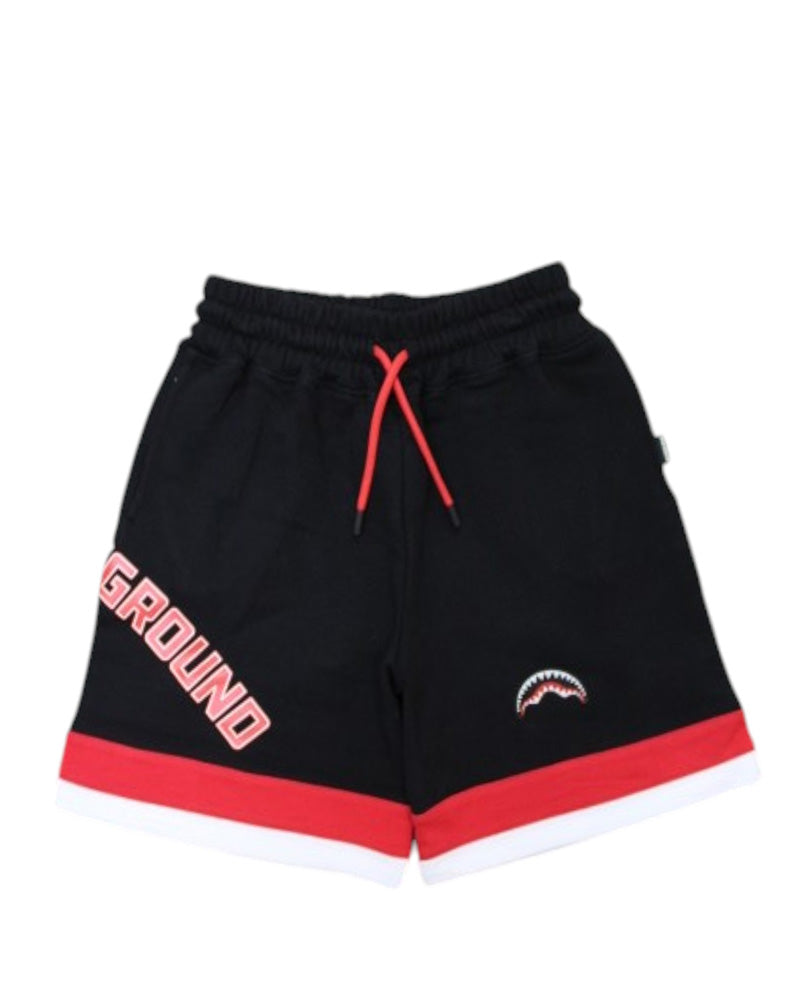 Bermuda Sprayground Daily da bambino in cotone. Vita elasticizzata con coulisse, tasche laterali a filo, patch Shark applicato sulla gamba e stampa logo laterale.
