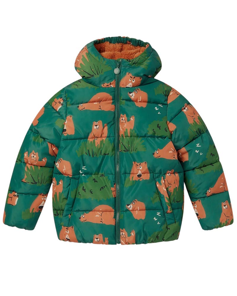 Steppjacke mit abnehmbarer Kapuze für Neugeborene, Reißverschluss vorne, seitliche Amerika-Taschen, Allover-Muster.